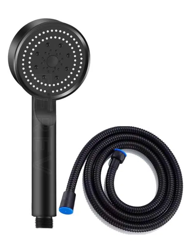 Berev 5 Fonksiyonlu Yüksek Basınçlı Duş Başlığı Mafsal , 150 Cm Duş Hortumu , Siyah Duş Seti