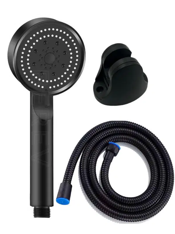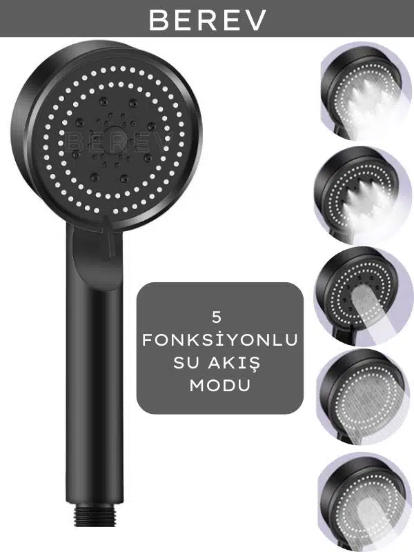 Berev 5 Fonksiyonlu Yüksek Basınçlı Duş Başlığı Mafsal , 150 Cm Duş Hortumu , Siyah Duş Seti