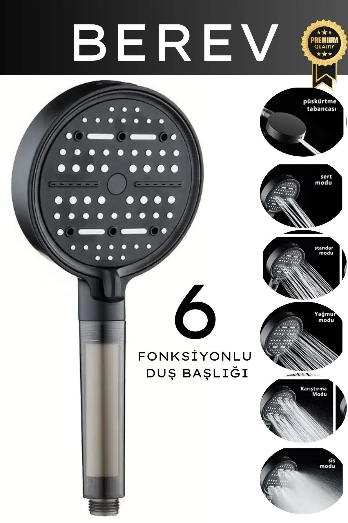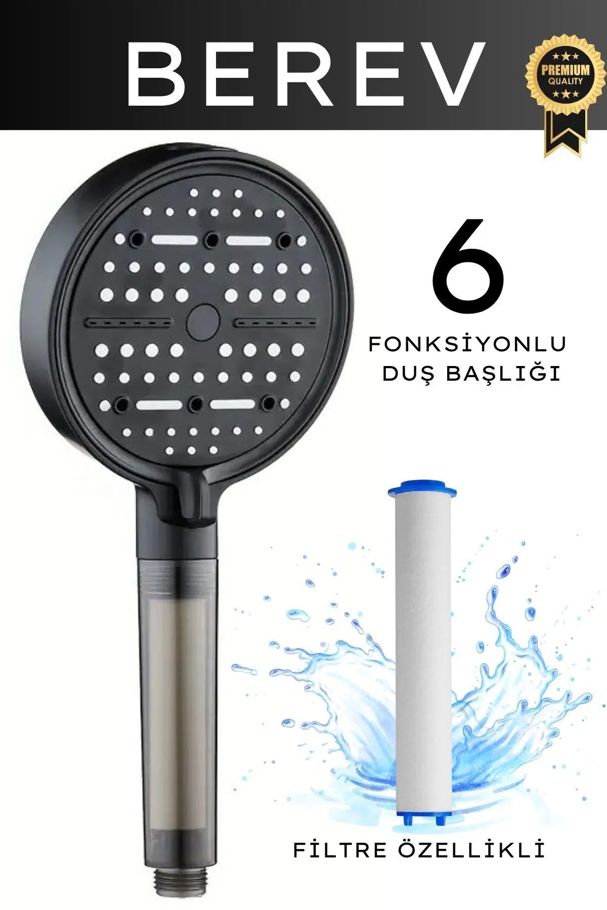 1 adet 6 fonksiyonlu filtreli duş başlığı