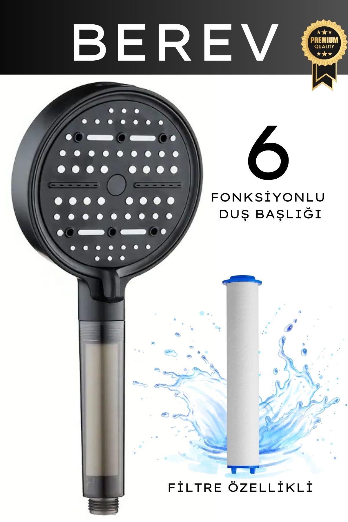 6 Fonksiyonlu Filtreli Duş Başlığı 3 Adet Yedek Filtre Su Tasarruflu Basınçlı Kireç Klor Önleyici