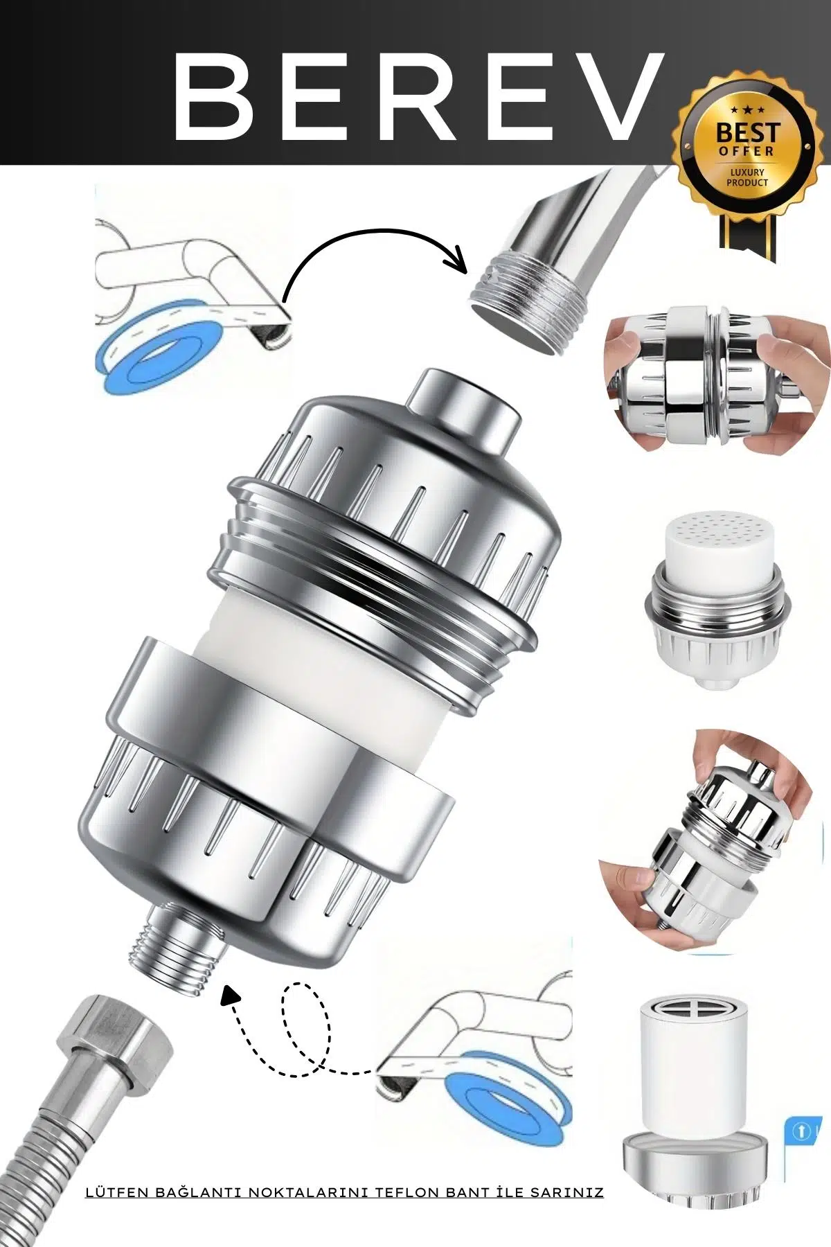 20 Katmanlı Üstün Koruma: Piyasadaki standart filtrelerin aksine, 20 farklı katman (KDF-55, kalsiyum sülfit, aktif karbon, seramik toplar vb.) kullanarak suyu en derin seviyede arıtır.